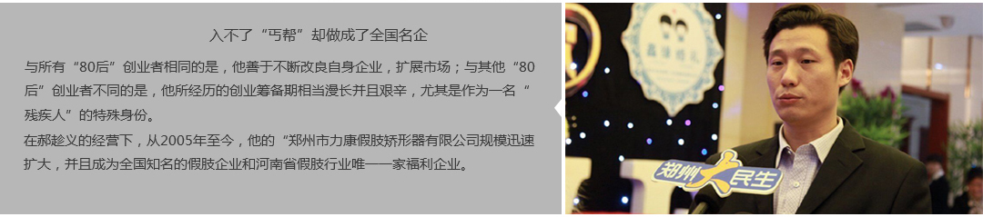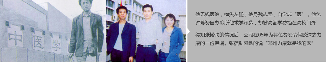 鄭州市力康假肢矯形器有限公司(簡稱力康),是一家專業(yè)從事假肢矯形器的設計、研發(fā)、制作及裝 配的專業(yè)機構。成立于1992年是河南省唯一一家福利企業(yè)。力康下設業(yè)務部、技術部、住院部、康復 部、售后服務部,并配有現(xiàn)代化的裝配車間和功能齊全的訓練大廳,為殘疾朋友康復訓練提供了可靠 保障??偨?jīng)理穿戴假肢多年,有著豐富的臨床經(jīng)驗和親身體會;多年來,力康已為全國幾十萬名殘疾 朋友安裝上舒適、美觀、耐用的假肢和矯形器具,使他們更大限度地恢復了正常的工作和生活?!爱a 品即人品”的質量理念、先進的技術、實惠的價格、完善的售后服務是力康取勝的法寶……